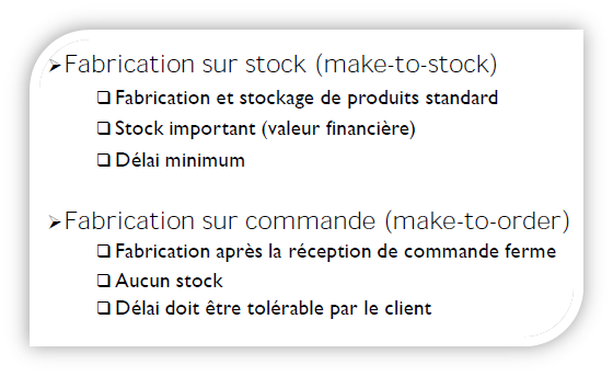 - Fabrication de produits : on parle de la gestion de production. On trouve dans ce cadre les entreprises qui opèrent dans le secteur primaire d’extraction et le secteur secondaire de transformation.